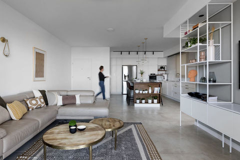 התמודדות עם האילוצים הובילה לפתרונות תכנוניים יצירתיים, כמו שימוש בקירות זכוכית כדי ליצור חיבור ויזואלי בין החללים, שמעניק תחושה של חופש ומרחב. הבית כולו עוצב בפלטת צבעים מונוכרומטית, שמעבירה תחושת רגיעה ושלמות בכל פינה. במטבח, אי גדול ומפנק עומד במרכז, ומשלב חומרים טבעיים שמעניקים לו תחושה חמימה ומשפחתית.